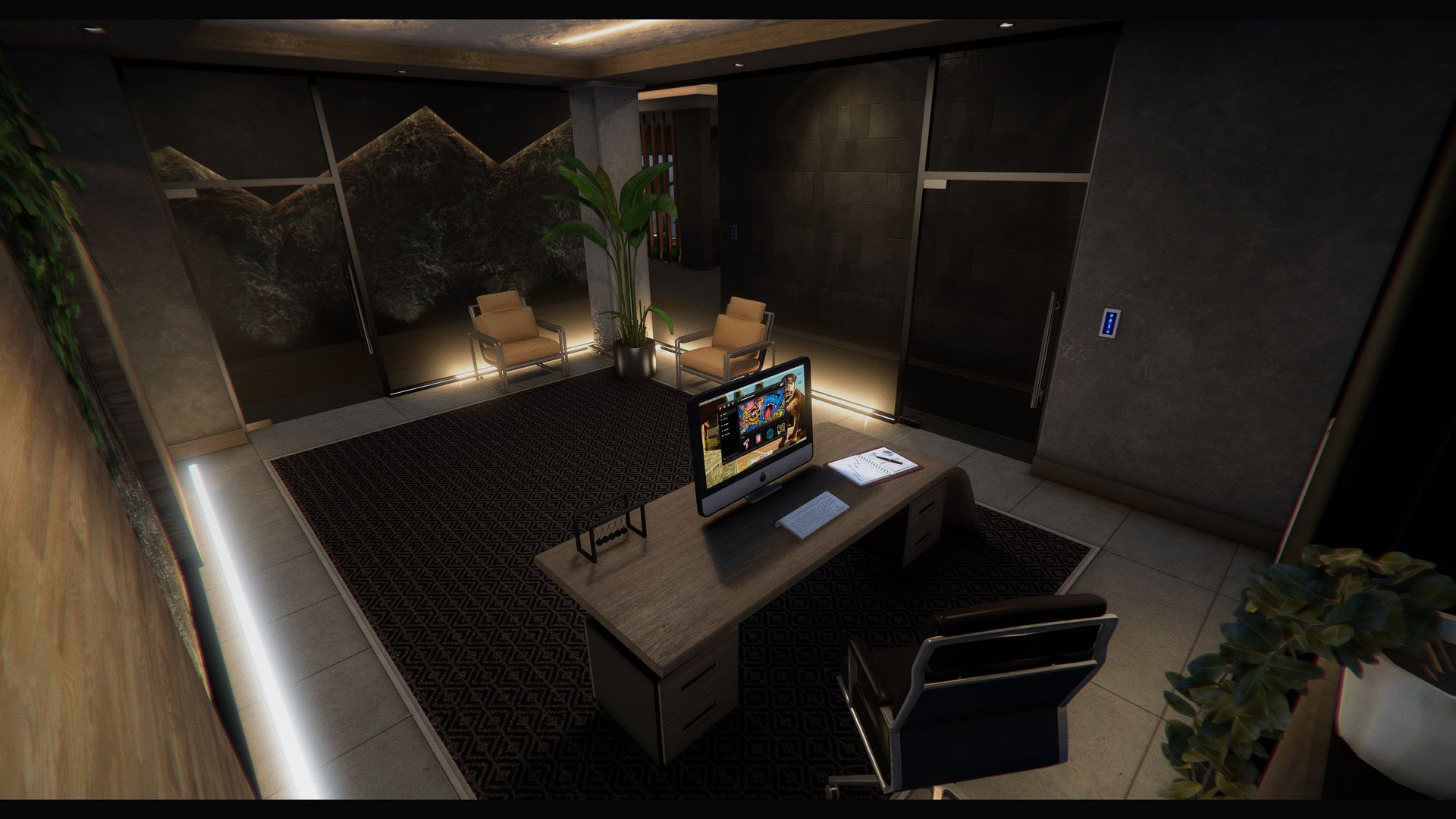 Each apartment features interactive smart switch props on the wall. Walk up and press E to open a menu where you can control the window blinds for each room. See the [Smart Switches](https://tstudio-by-turbosaif.gitbook.io/tstudio/products/mlos/peak-towers-apartments/smart-switches) page for details.
